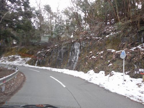 由布岳に行く計画をしていたが、出発時間でまとまらず 結局、英彦山の四王寺の滝へ行くことにした 1)家のバケツの水は凍っていなかった 2)別所駐車場までの車道も凍っていなかった しかし・・・ 3)別所駐車場手前のヘアピン・カーブの岩壁には大きなツ…