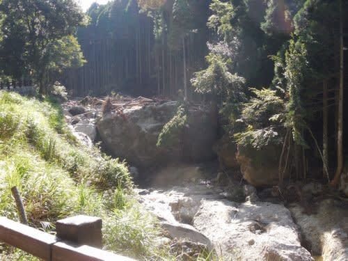 岳滅鬼山へ行くつもりで深倉園地を目指したが、通行止めになっていた 通行止めの脇を抜けて行ってみたが・・・ 豪雨により、深倉峡の様子が変わっていた 道路に水が流れ、真ん中辺が洗われていた、ここで岳滅鬼山は諦めて、予備の鷹ノ巣山へ行くことにした …