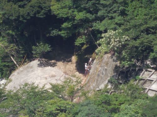 福智山へ、ナベナ、ナンバンハコベ、ツルギキョウを見に出かけたら・・・ 削岩機の音が煩く聞こえるので見ると、山の斜面の高い場所で工事が行われていた 仕事とはいえ、大変だねぇ・・ ミズタマソウ、水玉が出来ていた オトコエシ ホトトギス ヤマホロシ ツ…