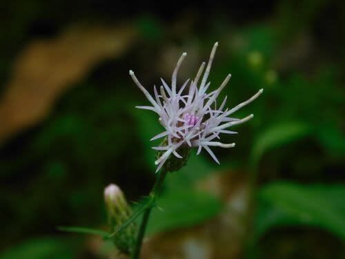 林道を散歩した、やはり暑い!!、それにブヨかブトか判らないが耳の周りでうるさかった。 いつの間にかパンツまでびしょ濡れになっていた。 マルバルコウソウ。 ハグロソウ。 サフランモドキ。 ベニバナボロギク。 シャクチリソバ、葉柄が無いように見える…