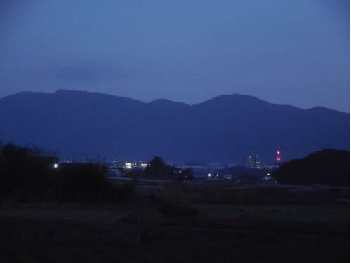 天気予報は曇りのち晴れだったかな? 家を出る前は久し振りに林道を歩くつもりだったが、曇り空で日の出は無理っぽいのでいつものルートに途中変更。 折り返し点より。 雲が消え、東の空に朝焼け、日の出が見れるかも?。 日の出、元旦と同じ場所からだが微…