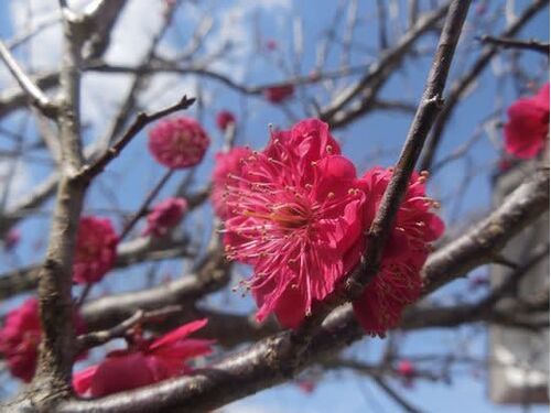作りかけの凧が出来上がったので、別にもうひとつ作って揚げに行ってきた。 家では紅梅も咲き出していた。 矢印まで揚がっています。 上手く揚がらなかったらと、そり糸や尻尾も準備していたのですが無用でした。 やっぴい凧という名の凧です。 新聞紙に自作…