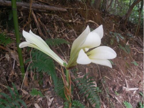 ウバユリが咲き出していた。 ウバユリ。 ヤブミョウガ。 ボタンクサギも見頃になっていた。 モンキアゲハも今年初見。 コクランは見頃を過ぎていた。 キツリフネの開花も、もうすぐのようだった。