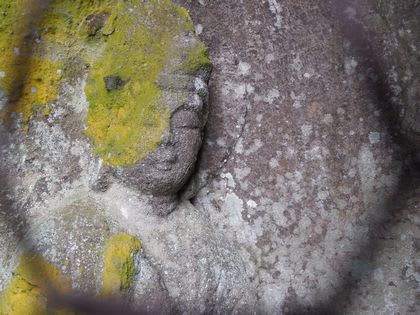 梵字岩の右端、読みにくくなっています、その右側・・、般若に見える?